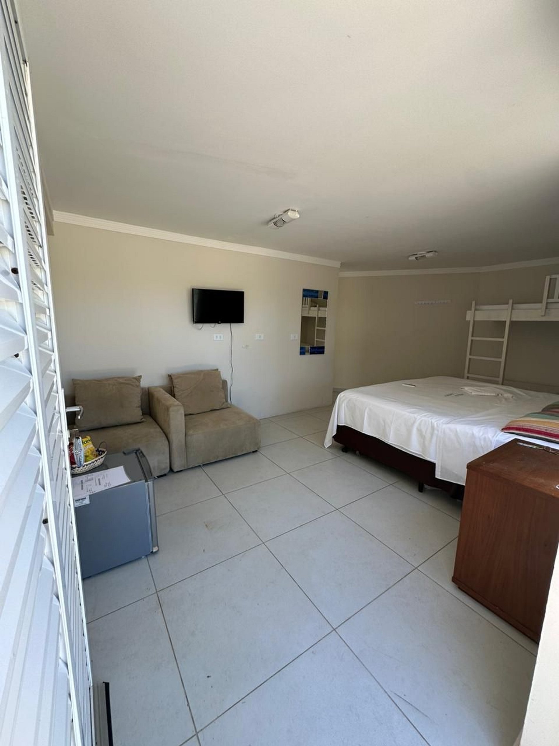 No interior da suíte, possuímos frigobar, TV, Ar Condicionado, tolhas para banho e também caso haja a necessidade, o serviço para troca de roupa de cama.