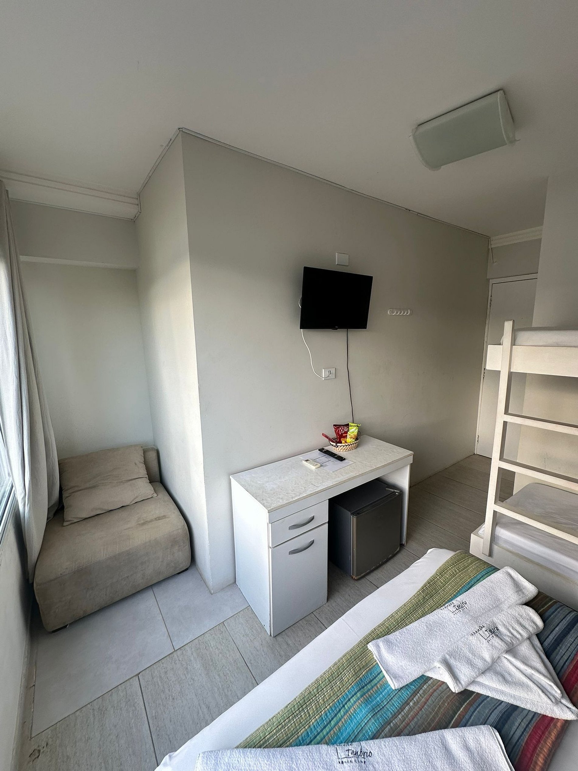 No interior da suíte, possuímos frigobar, TV, Ar Condicionado, tolhas para banho e também caso haja a necessidade, o serviço para troca de roupa de cama.